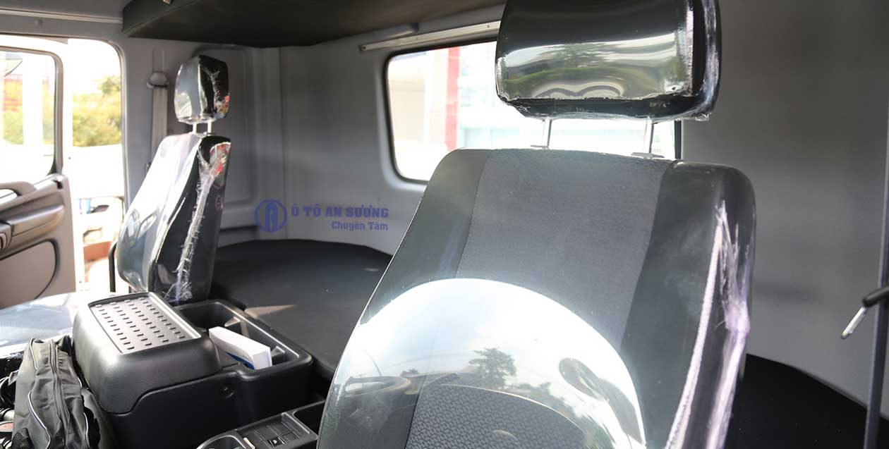 Đầu kéo Hino 2 cầu trang bị cabin rộng rãi với 2 giường nằm, 2 ghế ngồi điều chỉnh được nhiều vị trí theo tư thế người lái.
