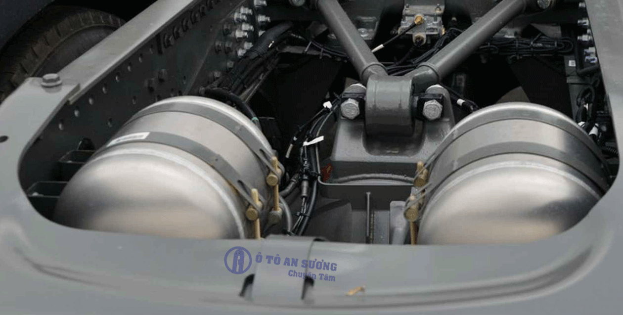 Hệ thống treo Đầu kéo Howo Max 460 HP sử dụng dạng nhíp lá với nhíp bản rộng. Và độ dày cao thoải mái quá tải mà không cần phải độn nhíp. Treo trước kết hợp nhíp lá và giảm chấn thủy lực giúp xe vận hành êm ái hơn.