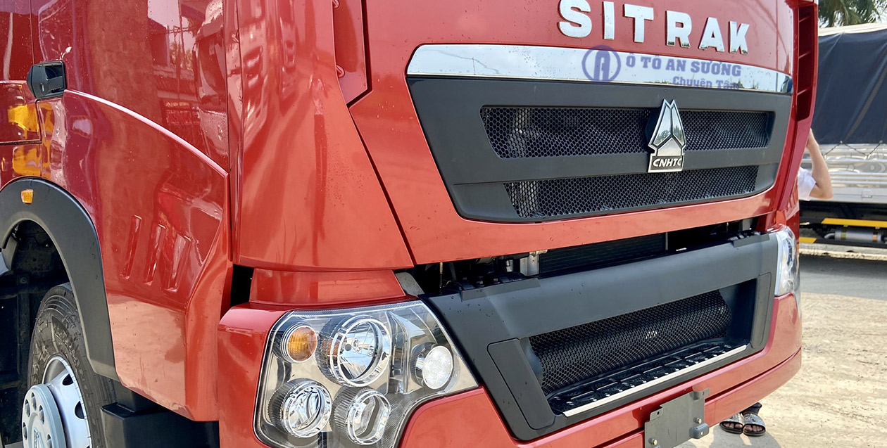 Mặt ga lăng thiết kế chia hai tầng rõ rệt dạng hình thang. Chính giữa đặt logo thương hiệu CNHTC mạ crom bạc, bên trên là logo Sitrak đầy mạnh mẽ. Thiết kế mặt ga lăng lớn giúp xe lấy gió tốt hơn khi vận hành, làm mát cho động cơ. Đồng thời, với thiết kế khí động học, hốc lấy gió giúp xe lướt gió tốt hơn, mang đến khả năng tiết kiệm nhiên liệu.