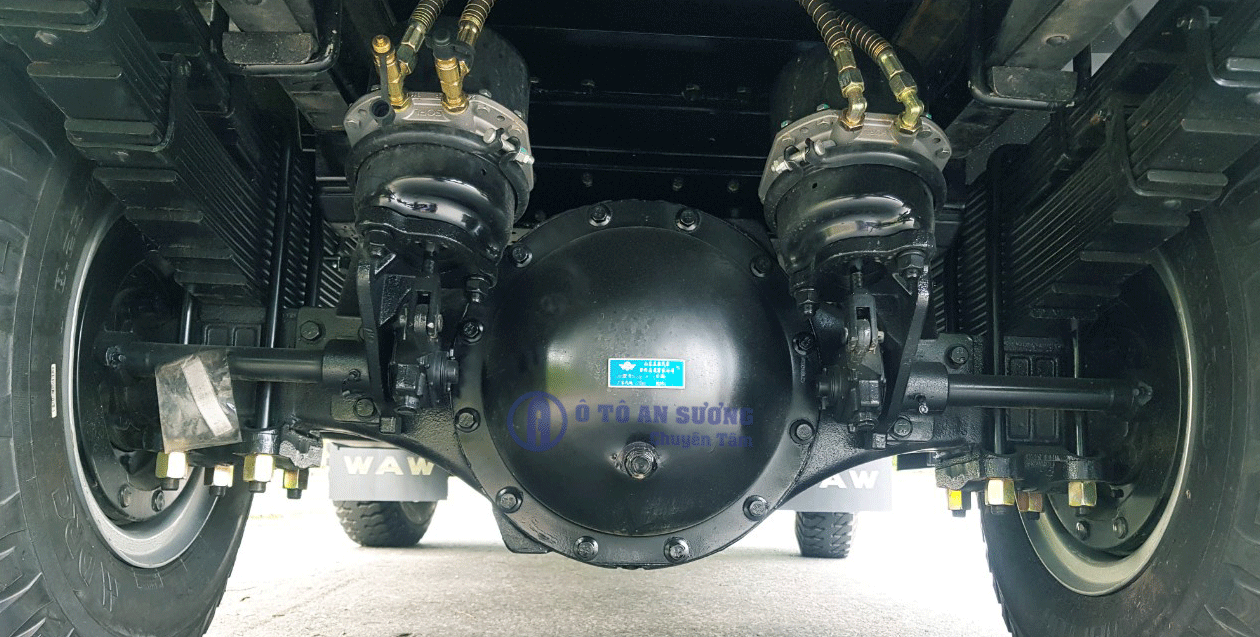 Cầu xe to đem lại khả năng vận hành mạnh mẽ, bền bỉ. Cộng thêm hệ thống lá nhíp hai tầng dày dặn, dẻo dai chịu tải cực tốt.