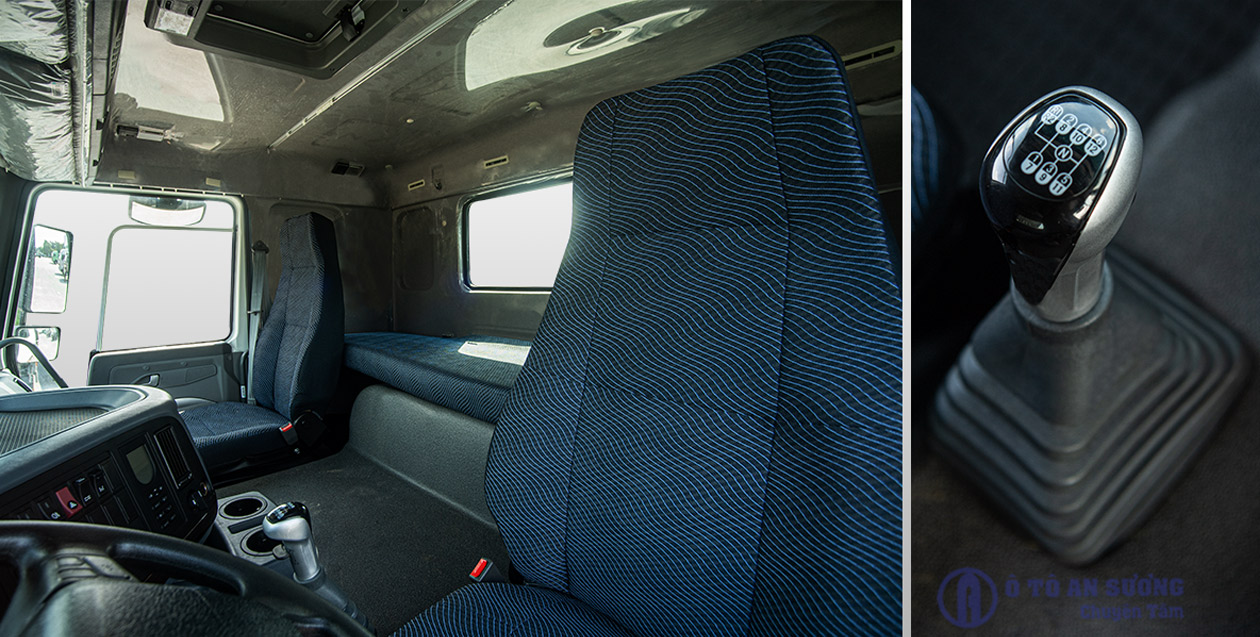 Xe sử dụng ghế hơi, trang bị giường nằm. Giúp bác tài nghỉ ngơi sau những chuyến chạy xe mệt mỏi áp lực.
