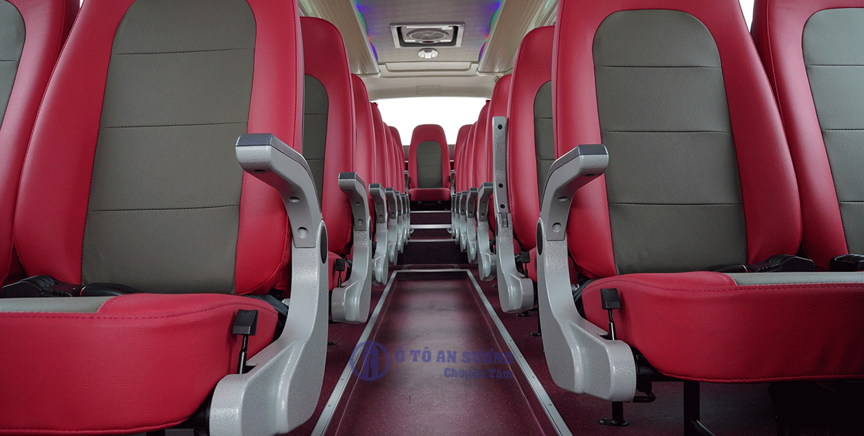 Hệ thống ghế ngồi hành khách được nhập khẩu nguyên chiếc mang lại cảm giác êm ái, chất lượng châu Âu. Ghế ngồi hành khách có thể điều chỉnh ngã ra phía sau giúp hành khách nghỉ ngơi trên những hành trình dài. Ghế lái là loại ghế có giảm sốc khí nén điều chỉnh được. Giúp bác tài có thể tùy chỉnh theo sở thích của bản thân. Có dây đai an toàn 03 điểm, có chuông cảnh báo. Và vỏ bọc ghế giả da êm ái, thoải mái lái chặng đường dài.
