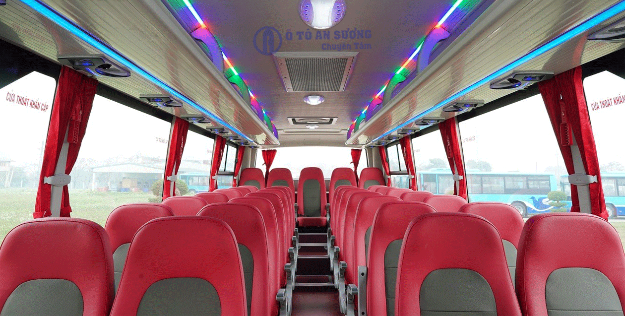 Xe khách 29c Daewoo sở hữu khoang hành khách vô cùng rộng rãi. Hệ thống đèn led chạy dài thân xe tạo không gian thoải mái cho hành khách.
