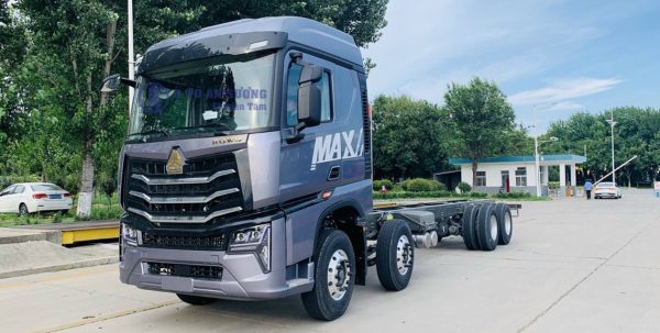 Chassi xe Howo Max 4 chân được trang bị loại chassis lồng. Được làm từ thép chuyên dụng, dạp bằng máy dập 6000T. Thiết kế với các lỗ tròn chống xoắn, tính đàn hồi cao, chống nứt gãy, sơn điện ly giúp chassi không bị oxi hóa.
