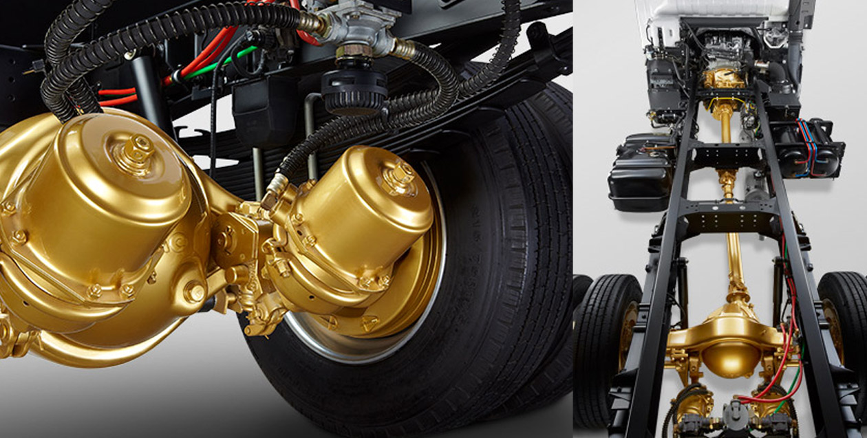 Hệ thống treo sau lá nhíp 2 tầng gồm 4 và 5 đi cùng bộ giảm chấn thủy lực giúp xe vận hành ổn định hơn.