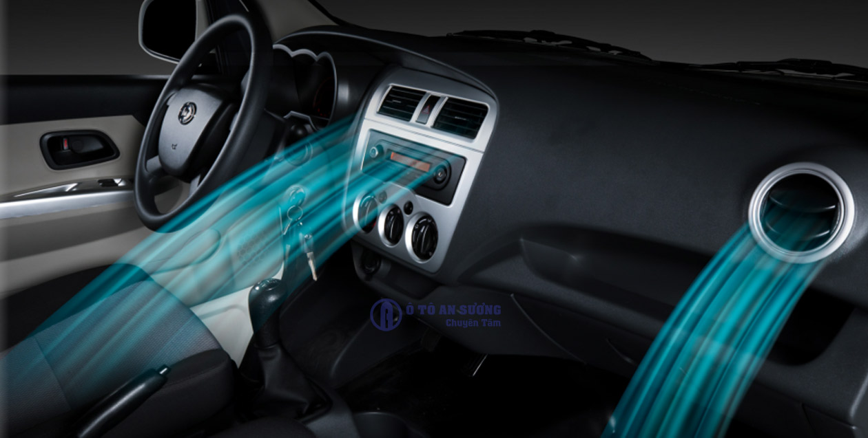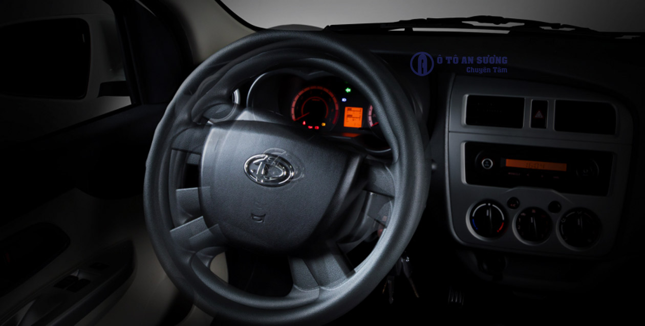 Khoang cabin rộng với 2 ghế ngồi bọc nỉ, ghế tài có thể điều chỉnh theo tư thế người lái để tài xế thuận tay lái nhất. Vô lăng 4 chấu, gật gù, trợ lực điện