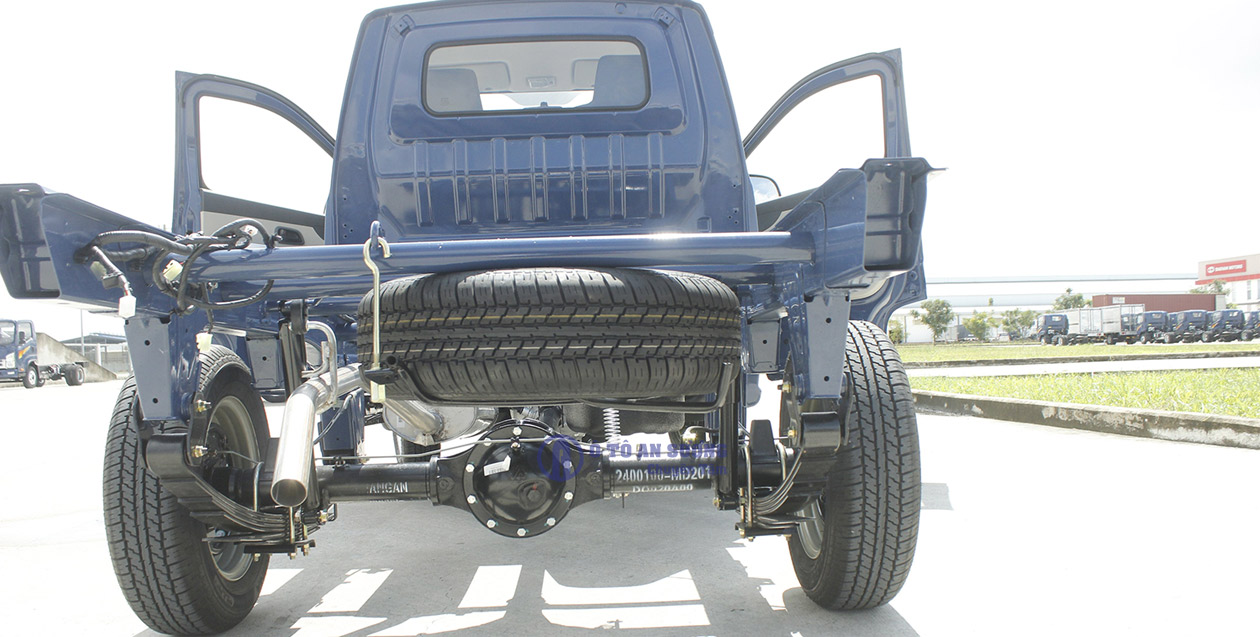 Tera 100 động cơ Mitsubishi có khung sườn được sơn tĩnh điện và gia cố 8 dầm chắc chắn, kết hợp với hệ thống treo sau – nhíp lá chịu lực giúp xe vận hàng êm ái trong quá trình vận chuyển.