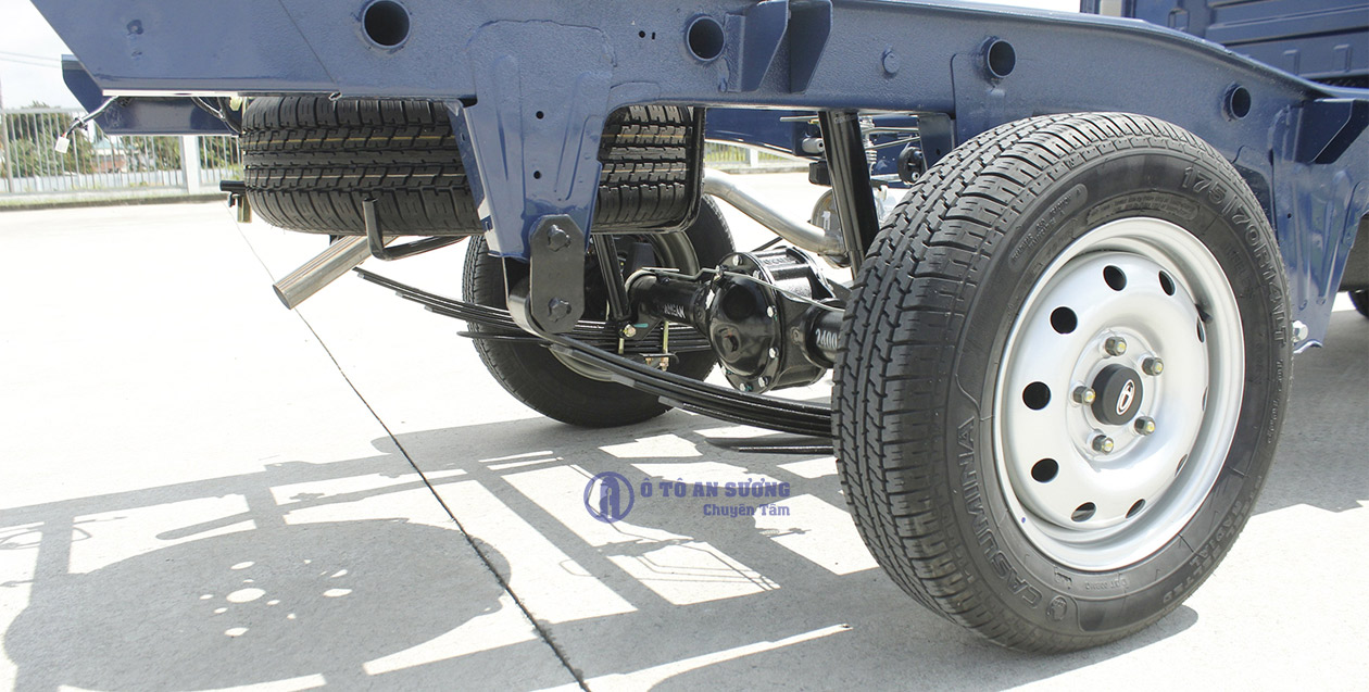 Hệ thống treo được trang bị bộ giảm chấn thủy lực ở cả treo trước và treo sau, trong đó treo sau trang bị nhíp 6 lá mỗi bên, chống rung lắc cho thùng hàng, hạn chế va đập để tráng hư hại cho hàng.