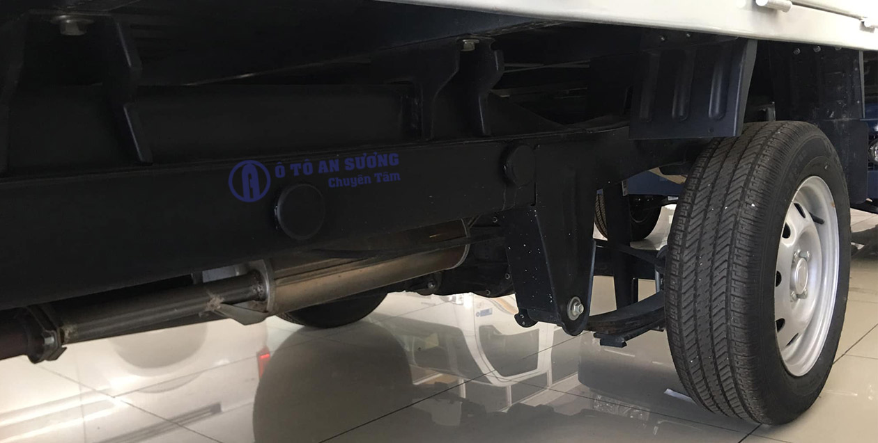 Hệ thống treo sau phụ thuộc 5 lá nhíp dày bản lớn cùng hệ thống giảm chấn thủy lực giúp xe di chuyển hàng hóa êm dịu trên mọi cung đường.
