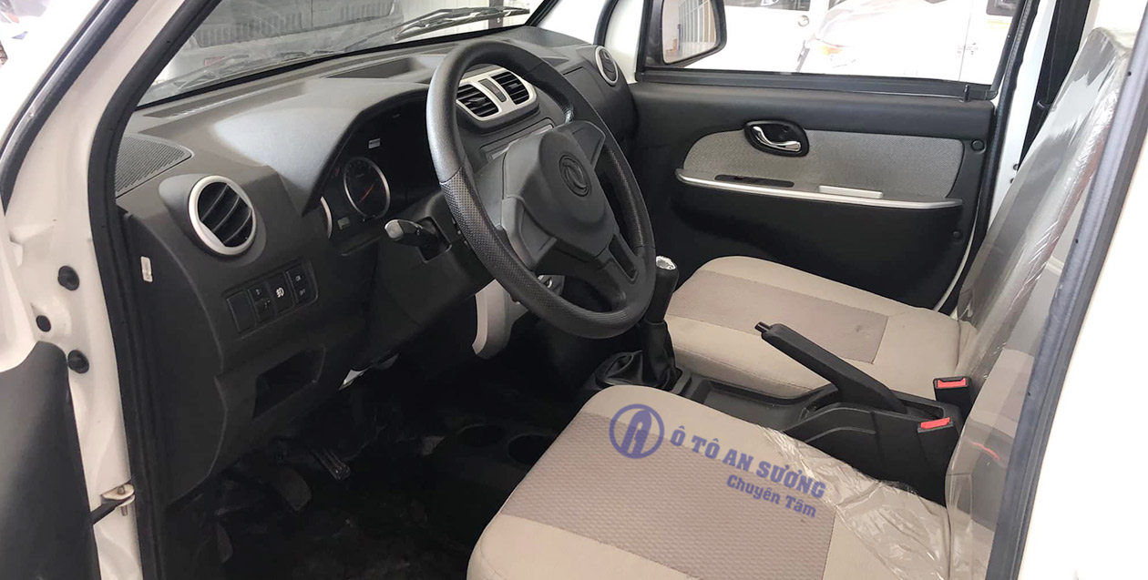 Là 1 dòng xe tải nhỏ nhưng không gian nội thất bên trong xe vô cùng rộng rãi và thoải mái với 2 ghế ngồi được bao bởi lớp nỉ cao cấp êm ái, mỗi ghế điều được trang bị dây đai an toàn tiêu chuẩn. Ghế lái có thể điều chỉnh thuận theo tư thế của mỗi người khác nhau.