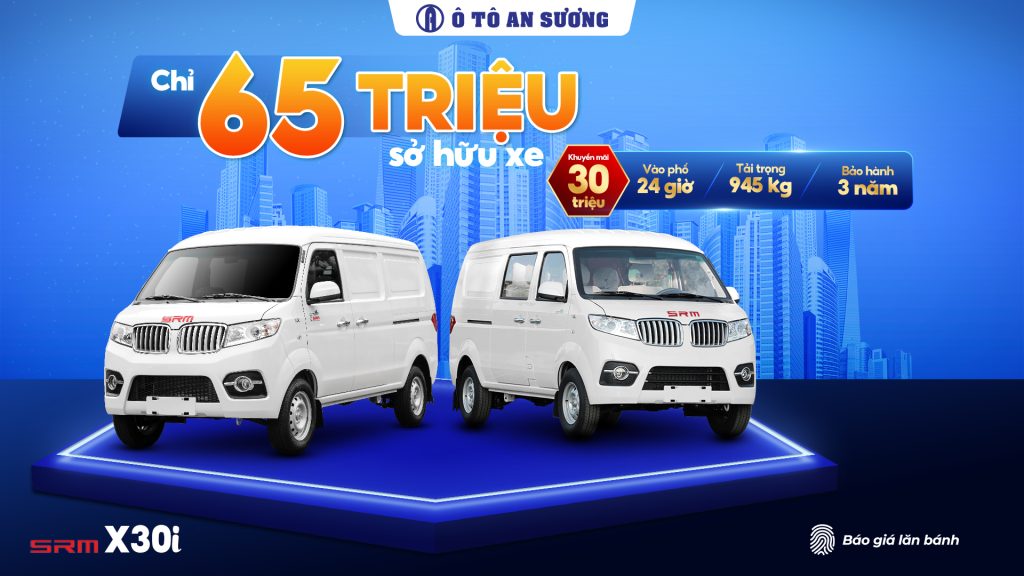 Xe tải van SRM X30i với kích thước thùng hàng lớn đến 4.5 khối, động cơ bền bỉ tiết kiệm nhiên liệu, đây là dòng xe van vào thành phố được nhiều đơn vị ưa chuộng với công dụng đa năng chở hàng – chở người linh hoạt. Hiện tại xe tải van SRM X30i đang có giá tốt tại đại lý Ô Tô An Sương và đang được Ưu Đãi Đến 30 Triệu Đồng. Quý khách hàng cần tư vấn báo giá lăn bánh vui lòng liên hệ với chúng tôi qua hotline: >> 0932.071.797 << để được hỗ trợ nhanh nhất. Giá xe SRM X30i trên chưa bao gồm giá lăn bánh, quý khách hàng vui lòng liên hệ với chúng tôi qua hotline hoặc qua zalo bên dưới để được báo giá lăn bánh tốt nhất.
